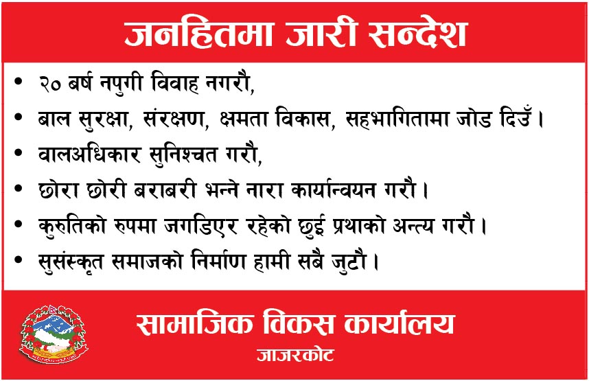 सहदेव बस्नेत जाजरकोट, चैत ११ गते । जाजरकोटमा शैक्षिक सुधारका लागि जिल्ला भरका प्रधानाध्यापक हरुले सामुहिक प्रतिवद्धता जनाएका छन । शिक्षा विकास तथा समन्वय इकाइ जाजरकोटको आयोजनामा सम्पन्न शैक्षिक गुणस्तर अभिवृद्धि सम्बन्धी सरोकारवालाहरु विचको अन्तरक्रिया कार्यक्रमपछि प्रधानाध्यापकहरूले सामूहिक रूपमा ४६