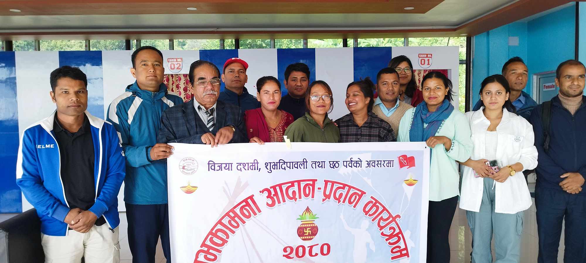 विजयादशमि, दिपावली तथा छठपर्वको अवसरमा शुभकामना आदानप्रदान कार्यक्रम सम्पन्न गरिएको गरिएको संगठनका जिल्ला अध्यक्ष अमरजंग शाहले जानकारी दिनु भयो । कार्यक्रममा नेकपाका माओवादी केन्द्रका स्थायी समिति सदस्य, कालीबहादुर मल्लले शुभकामना व्यक्त गर्दै स्वासथ्यकर्मिहरुले सेवा प्रवाह वाट जनताको मन जित्दै जाने विश्वास व्यक्त गर्नु भयो ।