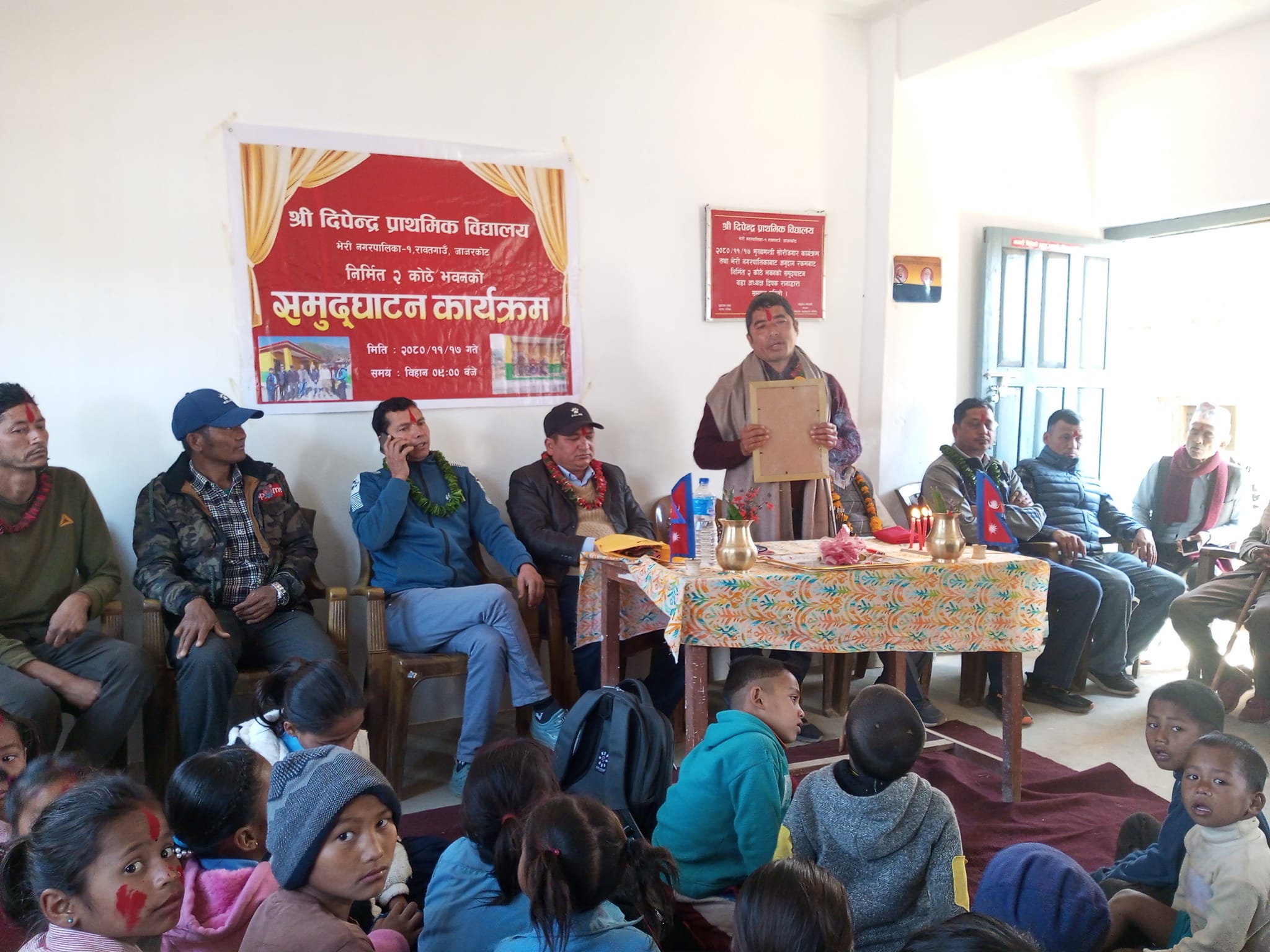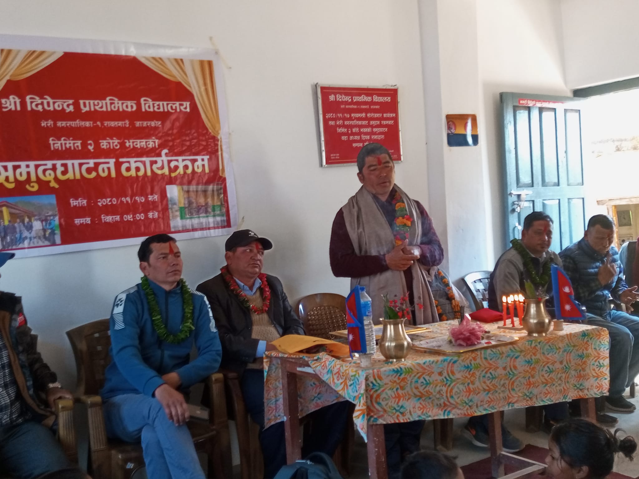 भेरी नगरपालिका वडा नं १ का वडाअध्यक्ष दीपक रानाले विद्यालय भवनको समुद्घाटन गर्दै विद्यालयको भौतिक संरचना सँगै आव गुणस्तरीय पठन पाठनमा जोड दिन आग्रह गर्नु भयो । विद्यालय व्यवस्थापन समितिका अध्यक्ष मधुकर नेपालीले यस विद्यालयको भौतिक संरचना निर्माणमा खेलेको भुमिकाको उहाँले उच्च प्रशंसा समेत गर्नु भएको थियो ।