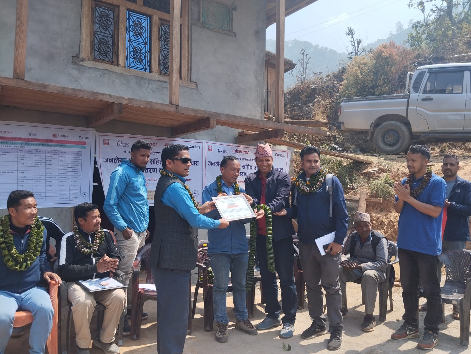आठबीसकोट नगरपालिका वडा नं १४ का वडाअध्यक्ष हुकुम वहादुर पुनको अध्यक्षतामा सम्पन्न भएको कार्यक्रमा वडा नं १३ का वडा अध्यक्ष टेक वहादुर थापा ,कारितास नेपालका मिल अधिकृत नबीन पौडेल ,यार्सन जाजरकोटका कर्मचारीहरु स्थानीय वुद्धिजीवी लगायत सरोकारवाला लाभग्राहीहरुको सहभागिता रहेको थियो । कार्यक्रममा वडा अध्यक्ष टेक वहादुर थापाले संस्थाले निर्माण सम्पन्न गरेका अस्थायि आवासहरु नमुना भएको भन्दै पहिले सरकारी स्तरवाट निर्माण गरेका लाभग्राहीहरु समेत आफुहरुलाई सस्थामार्फत वनाउन माग गरिरहेको बताउनु भयो ।