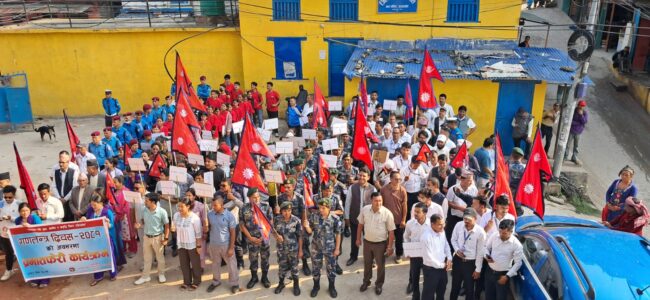 जाजरकोट, जेठ १७ गते । जाजरकोटमा गणतन्त्र दिवस–२०८१ विभिन्न कार्यक्रमको आयोजना गरेर मनाइएको छ । जस अन्तरगत पहिलो दिन भेरी नगरपालिका–१ कालेगाउँ स्थित शिवालय मन्दीर परिसर सरसफाई गरीएको थियो । १७ औं गणतन्त्र दिवसको मुल समारोह समितिका सदस्य सचिव तथा जिल्ला समन्वय समिति जाजरकोटका सदस्य खडक बीसीका अनुसार दोस्रो दिन खलंगाको ठाटी बजारदेखि प्रभातफेरी कार्यक्रम गैरीखाली पुगेर कोणसभामा परिणत भएको थियो ।