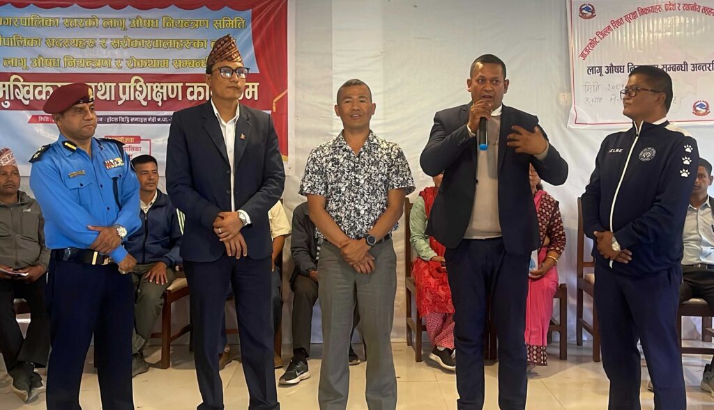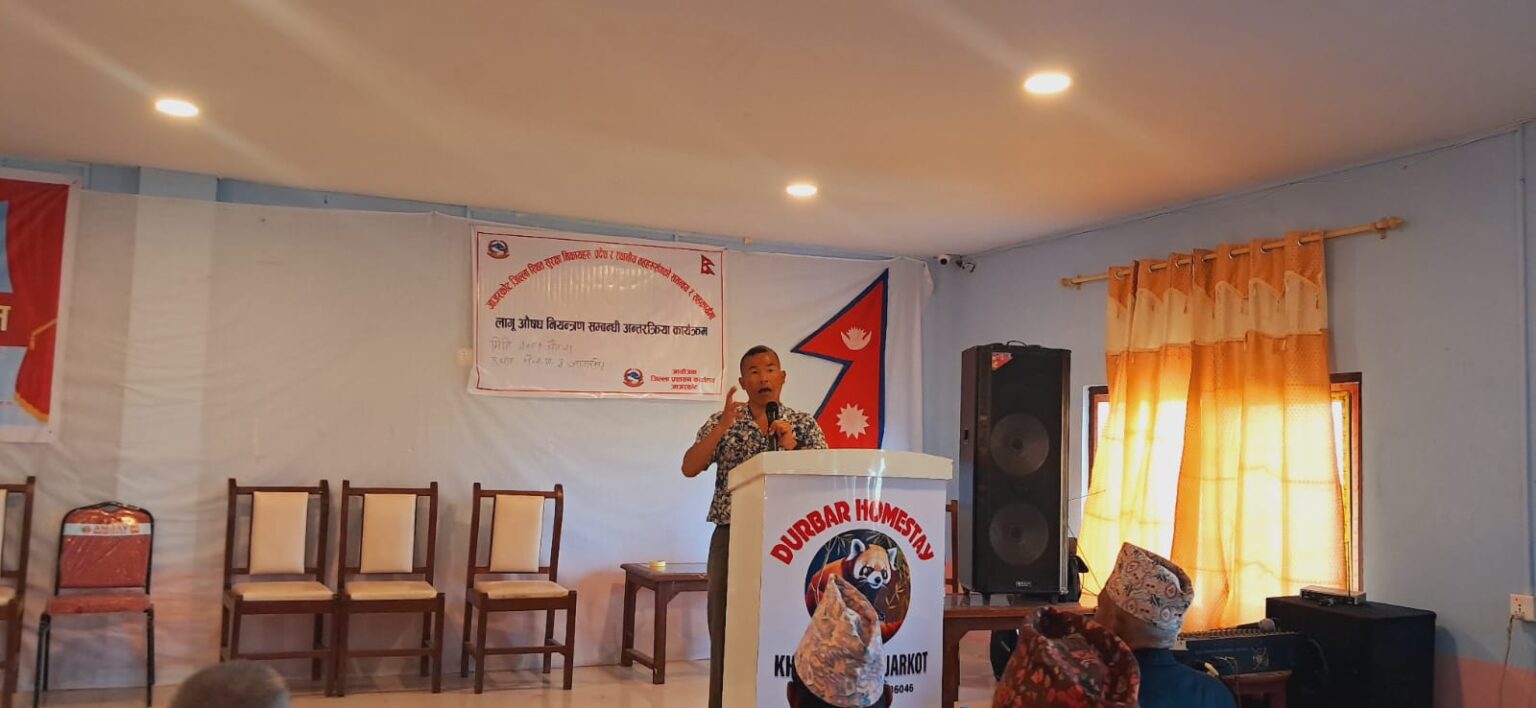 जाजरकोट, चैत २१ गते । जाजरकोटको भेरी नगरपालिकाले लागु औषध नियन्त्रण तथा रोकथाम सम्बन्धी वृहत अभिमुखीकरण तथा प्रशिक्षण कार्यक्रम सम्पन्न गरेको छ । नगरपालिका स्तरीय लागु औषध नियन्त्रण समिति, कार्यपालिका सदस्य र सरोकारवालाहरुलाइ भेरी नगरपालिकाले बिहिबार लागु औषध नियन्त्रण तथा रोकथाम सम्बन्धी अभिमुखीकरण तथा प्रशिक्षण दिएको हो ।