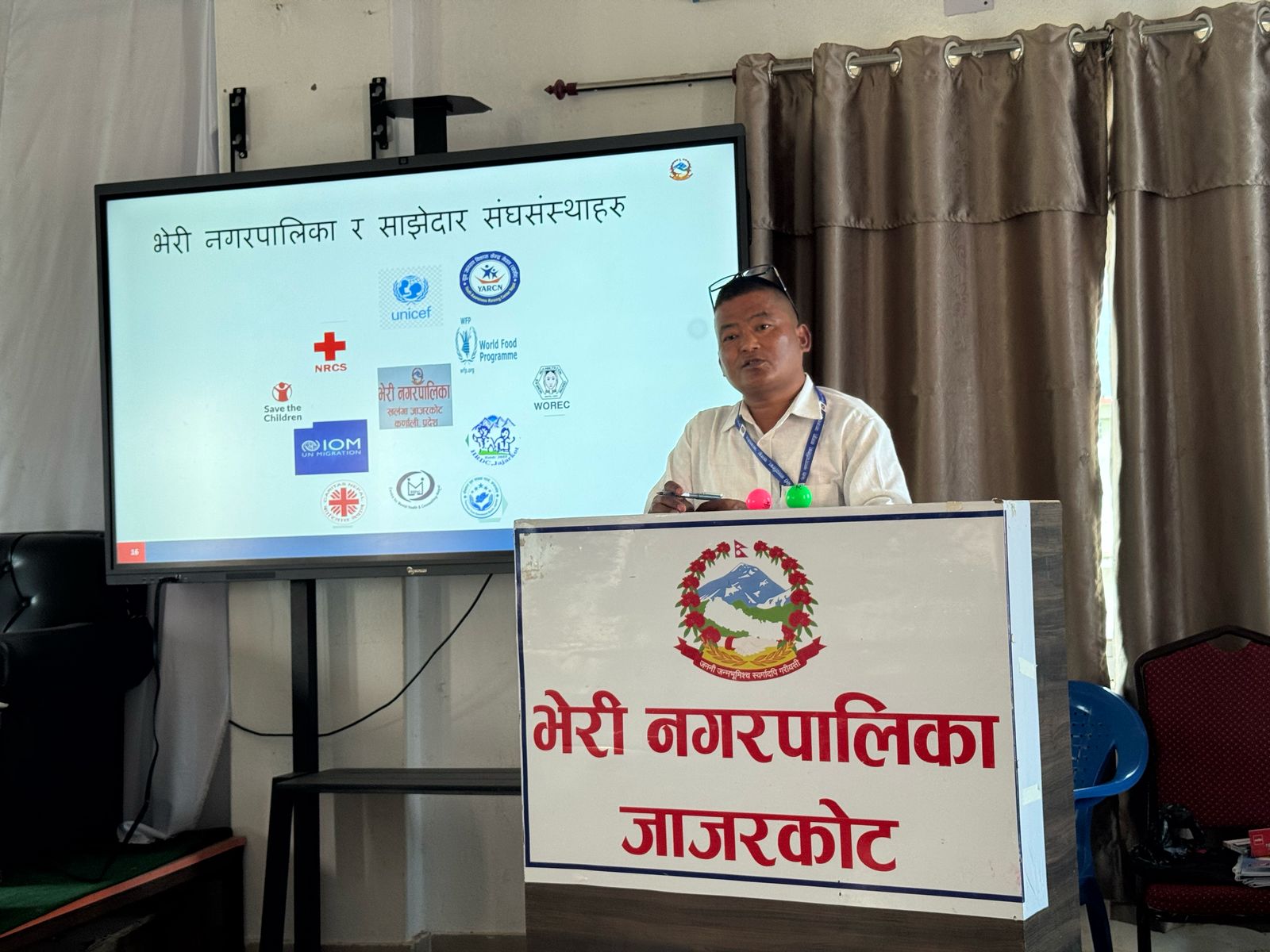 भेरी नगरपालिकाका उपप्रमुख सीता जैसी को अध्यक्षतामा सम्पन्न भएको वैठकको सन्चालन विपद साखा प्रमुख यज्ञ गौतमले सन्चालन गर्नु भएको थियो । यस्ता खाले वैठकलाई निरन्तरता दिइने सामाजिक साखाका सनत दवाडीले जानकारी दिनु भयो । वैकमा संस्थाका कार्यक्रम प्रमुख तथा संस्थाका कार्यसमितिका अध्यक्ष तथा प्रमुखहरुको ुहभागिता रहेको थियो ।