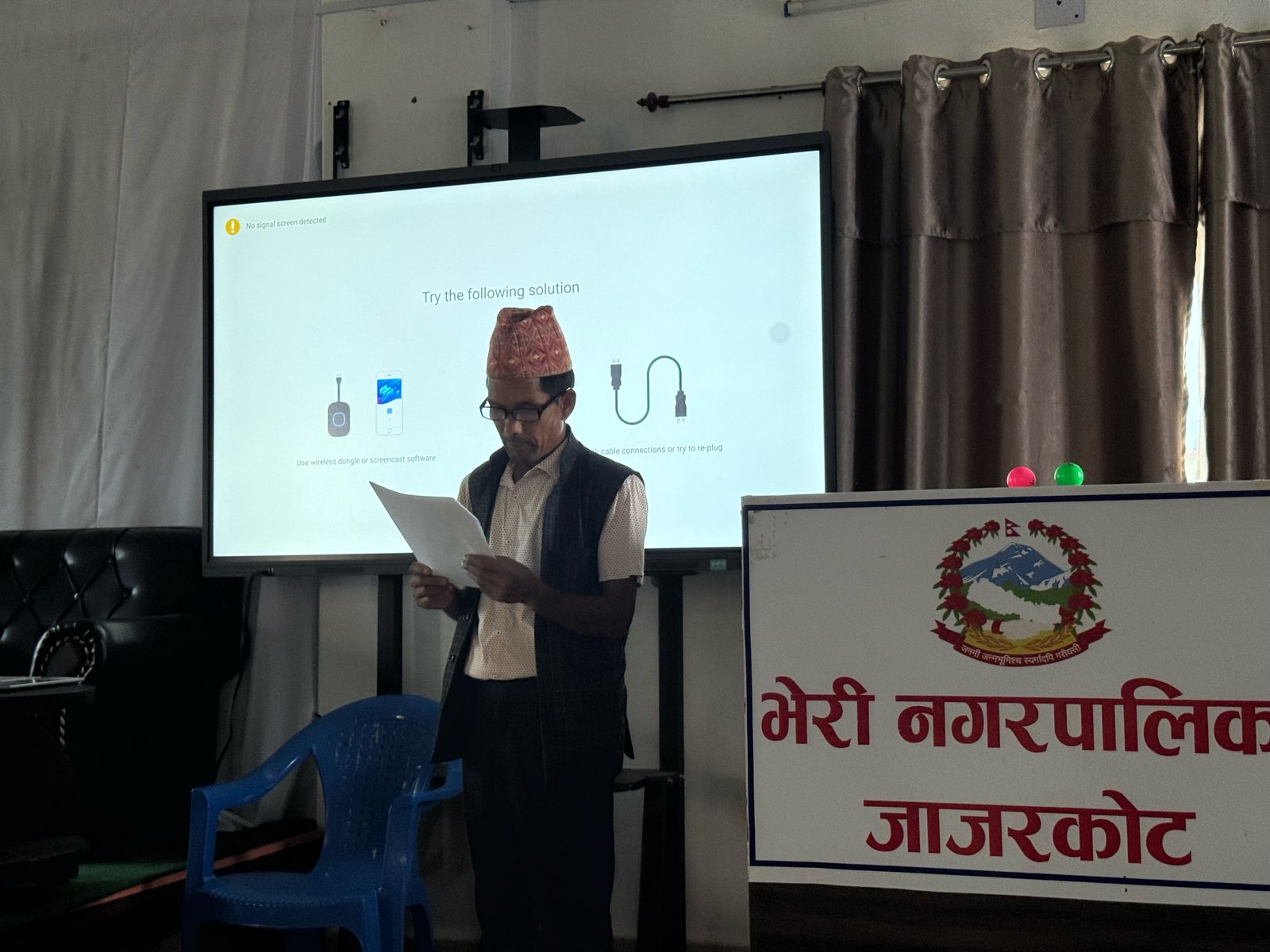 जाजरकोट, वैशाख १७ गते । भेरी नगरपालिका जाजरकोटले नगरपालिका भित्र कार्यक्रम सन्चालन गरिरहेका विकास साझेदारहरु सँग समन्वय वैठक सम्पन्न गरेको छ । भेरी नगरपालिकाका निमित्त प्रमुख प्रशासकीय अधिकृत दल वहादुर घर्तीले भेरी नगरपालिका भित्र क्रियासील साझेदारहरु सँग आगामि आ.व. २०८२।०३ को प्रस्तावित वजेट तथा कार्यक्रम को जानकारी लिनका लागि वैठकको आयोजना गरिएको वताउनु भयो ।